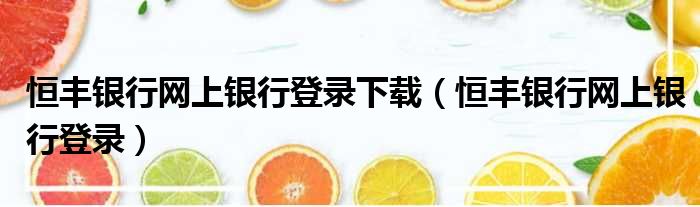 导读 大家好,小活来为大家解答以上的问题。恒丰银行网上银行登录下载,恒丰银行网上银行登录这个很多人还不知道,现在让我们一起来看看吧!1、恒