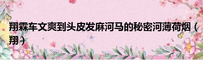 导读 大家好,小活来为大家解答以上的问题。翔霖车文爽到头皮发麻河马的秘密河薄荷烟,翔这个很多人还不知道,现在让我们一起来看看吧!1、翔啊