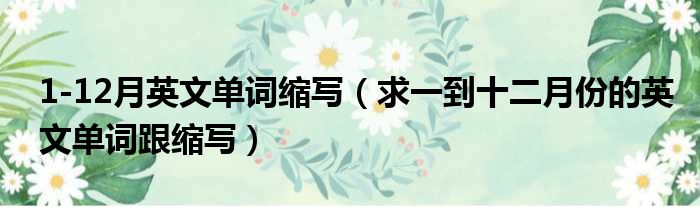 导读 大家好,小活来为大家解答以上的问题。1-12月英文单词缩写,求一到十二月份的英文单词跟缩写这个很多人还不知道,现在让我们一起来看看吧!1