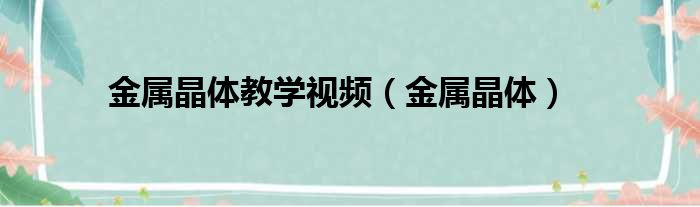 大家好,小活来为大家解答以上的问题。金属晶体教学视频,金属晶体这个很多人还不知道,现在让我们一起来看看吧!