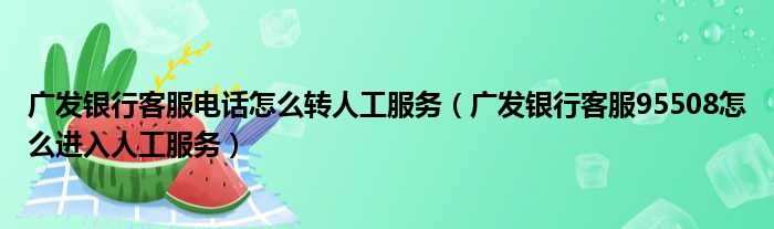 广发银行客服电话怎么转人工服务(广发银行客服95508怎么进入人工服务)