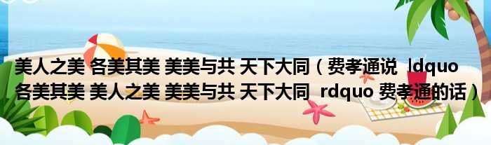 美人之美 各美其美 美美与共 天下大同(费孝通说 ldquo 各美其美 美人之美 美美与共 天下大同 rdquo 费孝通的话)