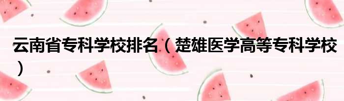 导读 大家好,小活来为大家解答以上的问题。云南省专科学校排名,楚雄医学高等专科学校这个很多人还不知道,现在让我们一起来看看吧!1、医疗保险