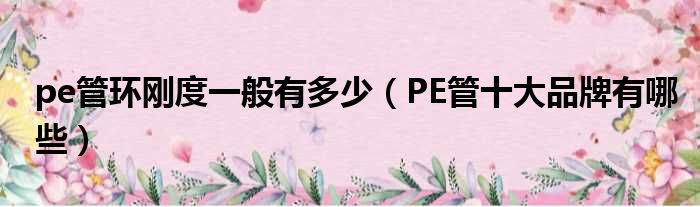 pe管环刚度一般有多少(PE管十大品牌有哪些)