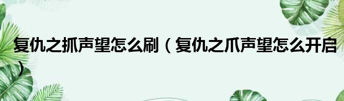 复仇之抓声望怎么刷(复仇之爪声望怎么开启)