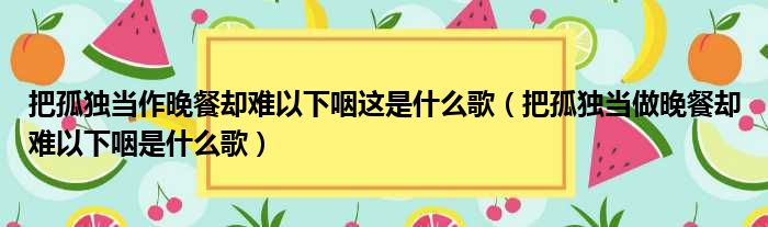 把孤独当作晚餐却难以下咽这是什么歌(把孤独当做晚餐却难以下咽是什么歌)