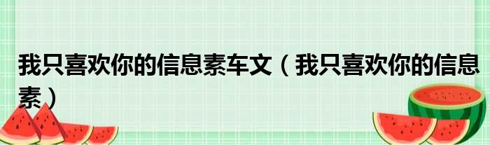 导读 大家好,小活来为大家解答以上的问题。我只喜欢你的信息素车文,我只喜欢你的信息素这个很多人还不知道,现在让我们一起来看看吧!1、《我喜