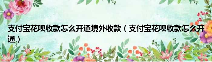 支付宝花呗收款怎么开通境外收款(支付宝花呗收款怎么开通)