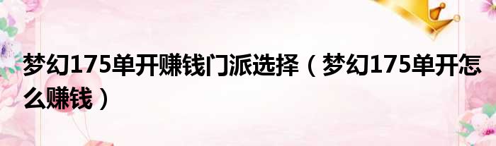 梦幻175单开赚钱门派选择(梦幻175单开怎么赚钱)