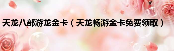 天龙八部游龙金卡(天龙畅游金卡免费领取)