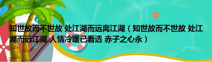 知世故而不世故 处江湖而远离江湖(知世故而不世故 处江湖而远江湖 人情冷暖已看透 赤子之心永)