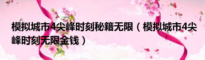 模拟城市4尖峰时刻秘籍无限(模拟城市4尖峰时刻无限金钱)