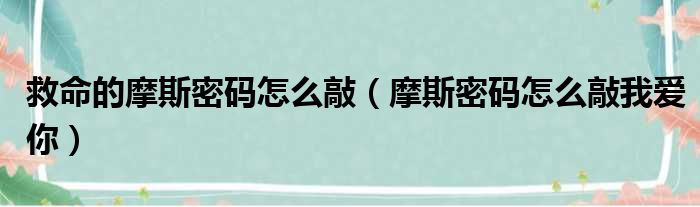 救命的摩斯密码怎么敲(摩斯密码怎么敲我爱你)