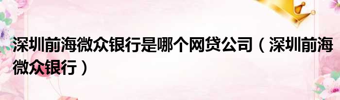 深圳前海微众银行是哪个网贷公司(深圳前海微众银行)