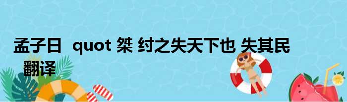 孟子日 quot 桀 纣之失天下也 失其民 翻译