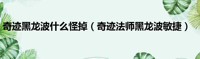 奇迹黑龙波什么怪掉(奇迹法师黑龙波敏捷)