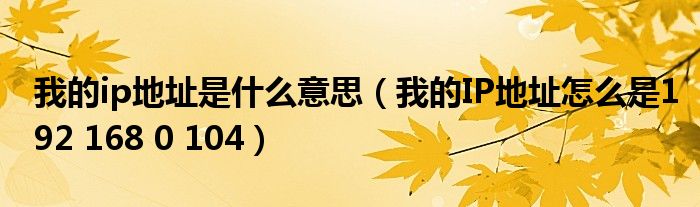 我的ip地址是什么意思(我的IP地址怎么是192 168 0 104)