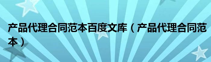 大家好,小东方来为大家解答以上的问题。产品代理合同范本百度文库,产品代理合同范本这个很多人还不知道,现在让我们一起来看看吧!