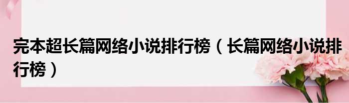 完本超长篇网络小说排行榜(长篇网络小说排行榜)
