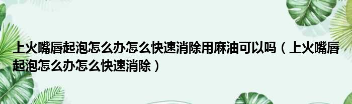 上火嘴唇起泡怎么办怎么快速消除用麻油可以吗(上火嘴唇起泡怎么办怎么快速消除)