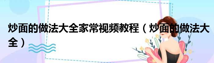 炒面的做法大全家常视频教程(炒面的做法大全)
