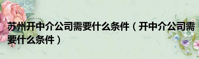 苏州开中介公司需要什么条件(开中介公司需要什么条件)