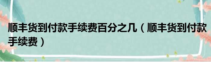顺丰货到付款手续费百分之几(顺丰货到付款手续费)