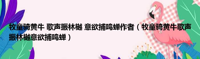 牧童骑黄牛 歌声振林樾 意欲捕鸣蝉作者(牧童骑黄牛歌声振林樾意欲捕鸣蝉)