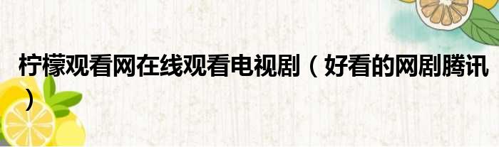 柠檬观看网在线观看电视剧(好看的网剧腾讯)