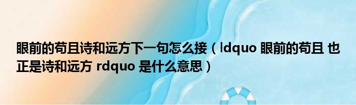 眼前的苟且诗和远方下一句怎么接(ldquo 眼前的苟且 也正是诗和远方 rdquo 是什么意思)
