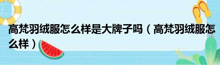 高梵羽绒服怎么样是大牌子吗(高梵羽绒服怎么样)
