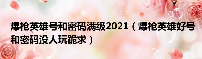 导读 大家好,小东方来为大家解答以上的问题。爆枪英雄号和密码满级2021,爆枪英雄好号和密码没人玩跪求这个很多人还不知道,现在让我们一起来看看
