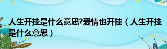 人生开挂是什么意思?爱情也开挂(人生开挂是什么意思)