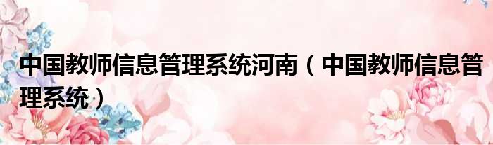 中国教师信息管理系统河南(中国教师信息管理系统)