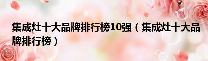 集成灶十大品牌排行榜10强(集成灶十大品牌排行榜)