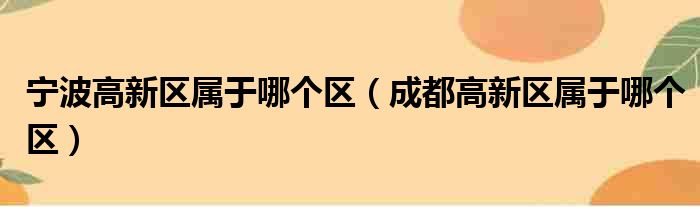 宁波高新区属于哪个区(成都高新区属于哪个区)