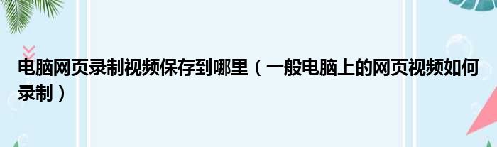 电脑网页录制视频保存到哪里(一般电脑上的网页视频如何录制)