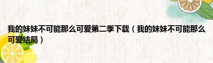 我的妹妹不可能那么可爱第二季下载(我的妹妹不可能那么可爱结局)