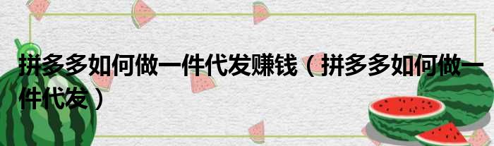 拼多多如何做一件代发赚钱(拼多多如何做一件代发)