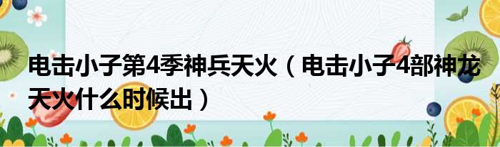 电击小子第4季神兵天火(电击小子4部神龙天火什么时候出)