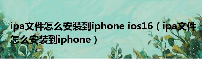 ipa文件怎么安装到iphone ios16(ipa文件怎么安装到iphone)