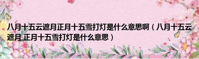 八月十五云遮月正月十五雪打灯是什么意思啊(八月十五云遮月 正月十五雪打灯是什么意思)