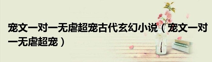 大家好,小东方来为大家解答以上的问题。宠文一对一无虐超宠古代玄幻小说,宠文一对一无虐超宠这个很多人还不知道,现在让我们一起来看看吧!