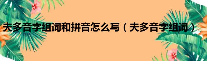 夫多音字组词和拼音怎么写(夫多音字组词)