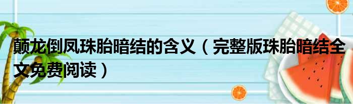 颠龙倒凤珠胎暗结的含义(完整版珠胎暗结全文免费阅读)