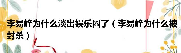 李易峰为什么淡出娱乐圈了(李易峰为什么被封杀)