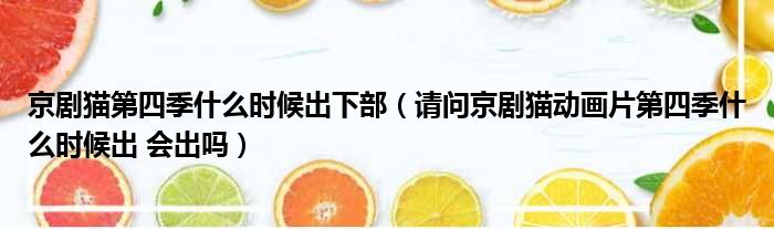 京剧猫第四季什么时候出下部(请问京剧猫动画片第四季什么时候出 会出吗)