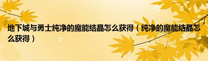 地下城与勇士纯净的魔能结晶怎么获得(纯净的魔能结晶怎么获得)