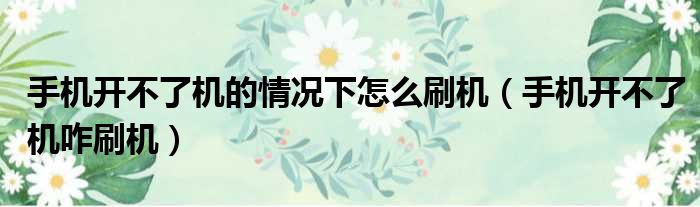 手机开不了机的情况下怎么刷机(手机开不了机咋刷机)
