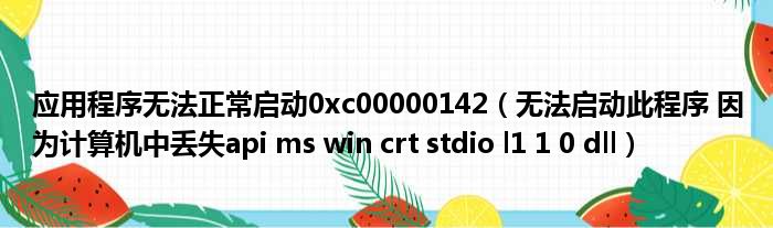 应用程序无法正常启动0xc00000142(无法启动此程序 因为计算机中丢失api ms win crt stdio l1 1 0 dll)